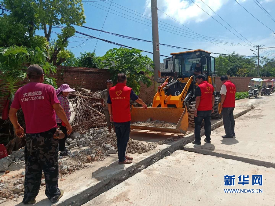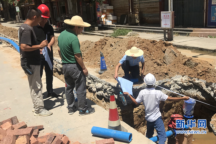 志愿者監(jiān)督管道開挖深度。新華網(wǎng)發(fā)(福清市供水辦供圖)