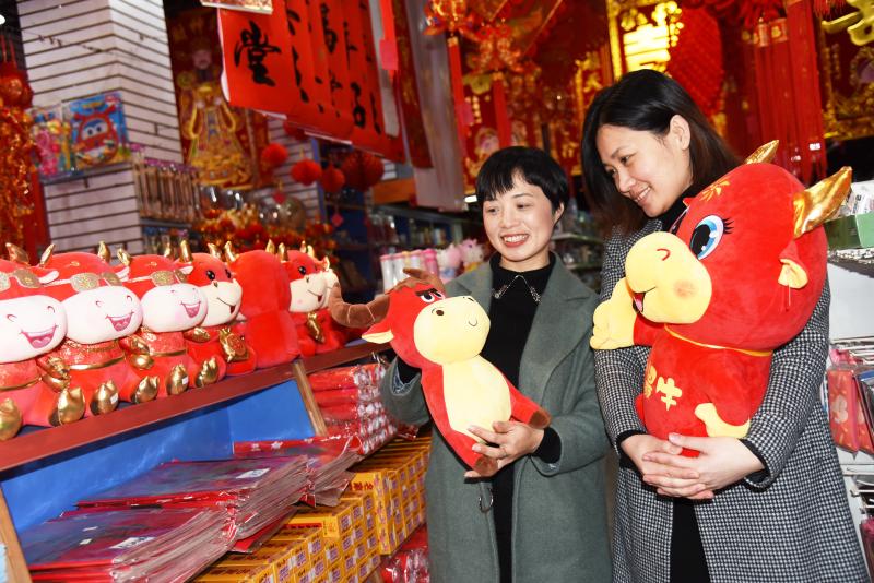 福清新聞網(wǎng)1月29日訊(記者 郭成輝 攝)新春佳節(jié)即將來(lái)臨,春節(jié)各類飾品又將融城裝扮得紅紅火火。連日來(lái),城區(qū)文化用品商店紛紛擺出牛年飾品、紅對(duì)聯(lián)、窗花、傳統(tǒng)中國(guó)結(jié)、電子鞭炮等飾品。圖為市民在挑選牛年飾品。