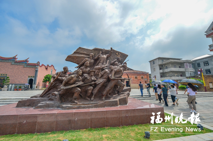 游客正在參觀中共福清縣委成立舊址廣場群體雕像。 福州晚報記者 王光慧 石美祥 通訊員 吳坤虹 林思洲 文/攝 重走一段紅軍路,追尋紅色足跡;自編自演一段紅色短劇,重溫革命歷史……福清市自黨史學習教育開展以來,全方位、多層次、多形式地掀起學習熱潮,充分挖掘和利用豐富的紅色文化資源,通過開展情景式、體驗式、沉浸式現場教學,創新方式方法,推動黨史學習教育不斷走深走實。
