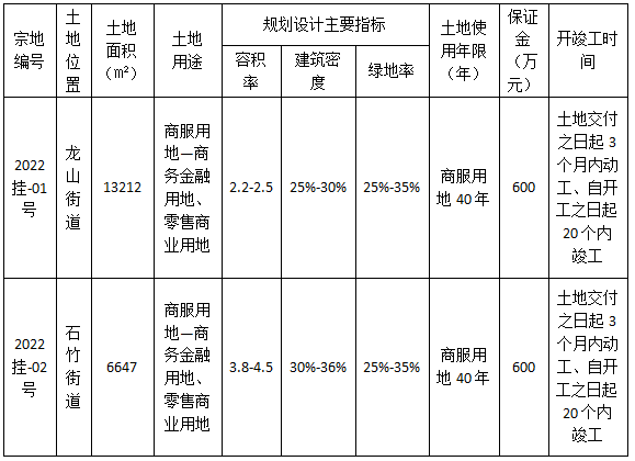 東南網福州福清5月17日訊(記者 黎臻懋 見習記者 林瑩芳)近日,福清市自然資源和規劃局發布《關于2022年度第一次公開掛牌出讓國有建設用地使用權公告》(以下簡稱《公告》)。 《公告》表明,經福清市人民政府批準,福清市自然資源和規劃局決定公開掛牌出讓兩幅地塊的國有建設用地使用權。本次國有建設用地使用權采取網上掛牌方式出讓,按價高者得的原則確定競得人。申請人可登錄福建省土地使用權出讓管理系統(網址http://220.160.52.204/publicweb/PublicWeb_fjzpg/Main/Index)查看掛牌出讓相關信息。 掛牌地塊的基本情況和規劃指標要求如下: