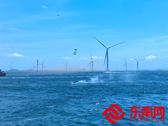演練現場(東南網記者 黎臻懋 攝) 本次綜合演練投入共投入人員260人次,船舶21艘,救助直升機1架,無人機2架,以及大量溢油應急處置裝備。 據了解,近年來隨著福建省臨海化工產業快速發展,沿海海上危險品運輸量隨之上漲,2021年全年全省沿海港口載運危險品船舶進出港近2萬艘次,危險品貨物吞吐量達1.9億噸。 “本次演練以海上風電設施和?;反靶孤楸尘?,部署周密、高效有序,達到了磨合機制、檢驗能力、鍛煉隊伍的預定目標,對于完善區域性搜救合作機制,提升海上危險貨物運輸突發事件應急處置能力具有重要意義。”福建海事局指揮中心主任陳孝武表示。