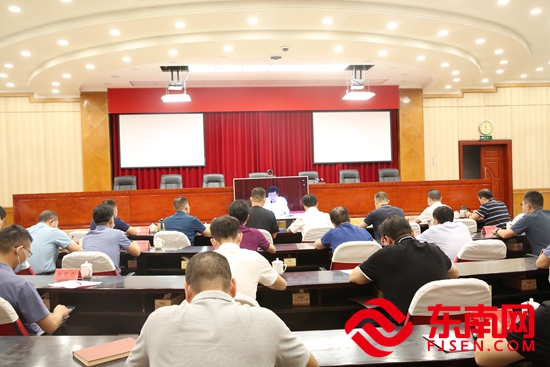 會(huì)議現(xiàn)場(chǎng)(本網(wǎng)見習(xí)記者 吳洛濱 攝) 東南網(wǎng)9月23日訊(見習(xí)記者 吳洛濱)今日上午,在收聽收看全省、福州市安全生產(chǎn)電視電話會(huì)議后,福清市緊接著召開安全生產(chǎn)工作會(huì)議。福清市委副書記、市長吳永忠部署講話。