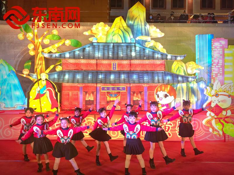 漁溪鎮(zhèn)“少兒舞蹈”表演(東南網(wǎng)福清頻道元宵花燈采編組 攝) 此外,為助力此次燈展活動,亮燈當天燈組周邊設置了多個“福味”展銷攤位,熱鬧非凡,精彩的歌舞表演、智慧大屏展示吸引游客駐足觀賞,營造出濃濃的節(jié)日氛圍。 |