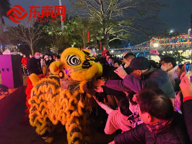 玉屏街道“舞獅送福”表演(東南網福清頻道元宵花燈采編組 攝)