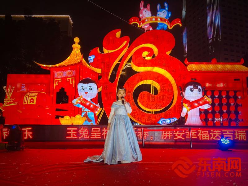 玉屏街道“少兒獨唱”表演(東南網福清頻道元宵花燈采編組 攝) 此外,燈展前側還搭建有紅色大舞臺,自1月31日亮燈起,連續開展了有舞獅、民族舞、腰鼓、功夫舞、男女獨唱等演出活動,人頭攢動,熱鬧非凡。據悉,演出表演將持續至2月10日。 |
