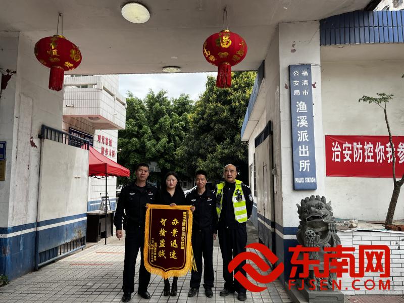 福清市公安局漁溪派出所民警收到錦旗(受訪者 供圖) “報案以后,看見民警很認真地在破案,而且在這么短的時間,還一分不差地幫我找回了被盜財產,我真的很感動,給我們民警點贊!”陳女士表示。 |