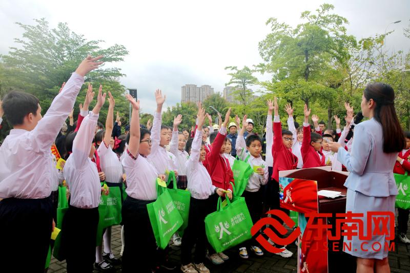 主持人帶領孩子們開啟游園之旅(東南網福清頻道記者俞雅萍 攝) 隨后,在主持人的帶領下,濱江小學觀溪校區的孩子們與現場觀眾一同開啟了游園之旅。此次活動圍繞“防范災害風險,護航高質量發展”主題,開展了形式多樣的宣傳活動,如展板展示、分發宣傳冊、體驗區演示等,向孩子們和過路居民普及地震、火災、水災等多種災害的防范知識和應急處置方法,全面宣傳防災減災相關知識和技能。