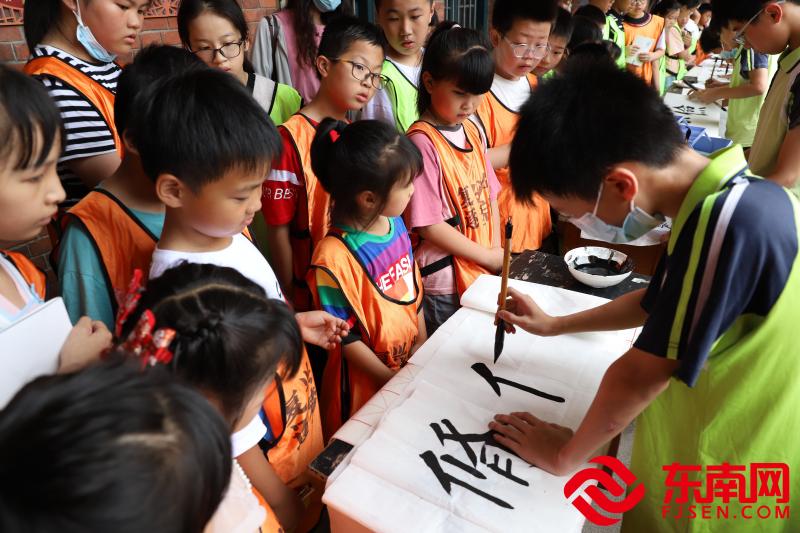 學生們參觀新厝鎮(zhèn)鄉(xiāng)賢·鄉(xiāng)風館。(福清市委文明辦 供圖) 展演結束后,學生們來到百年華僑古厝新厝鎮(zhèn)鄉(xiāng)土館,了解館內歷史、老華僑特色、傳統(tǒng)民俗,感受鄉(xiāng)土氣息,并參觀新厝鎮(zhèn)鄉(xiāng)賢·鄉(xiāng)風館,學習“習近平談家風家訓”,傳承優(yōu)良家風家訓,以“小家”文明帶動“大家”和諧。 此外,現(xiàn)場還開展家風家訓金句書法創(chuàng)作。一筆一劃,一幅幅家風家訓格言警句躍然紙上,以家風正氣滋潤童心。 |