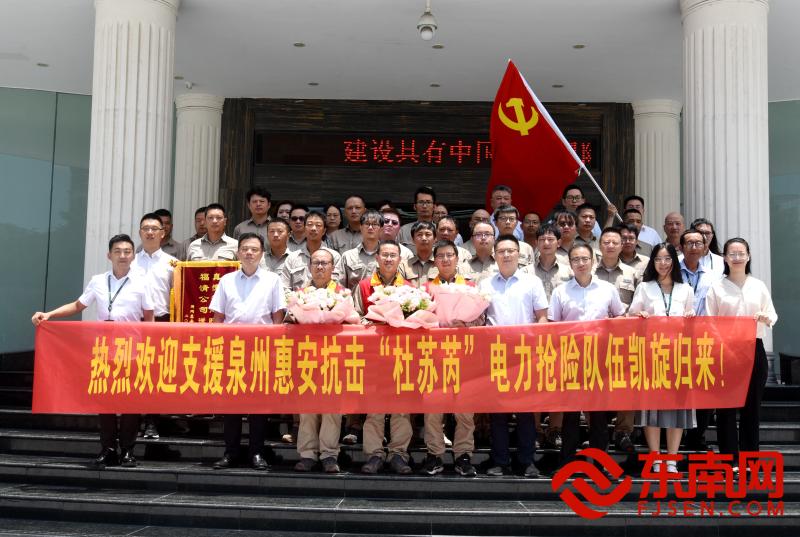 東南網福清8月1日訊(通訊員 陳天渝)日前,隨著泉州市惠安縣輞川鎮10千伏輞川線前洋支線復電成功,標志著國網福清市供電公司支援惠安縣電力搶修工作圓滿收官。8月1日上午,赴惠安縣輞川鎮搶修的支援隊伍,30多名搶撿隊員凱旋歸來。