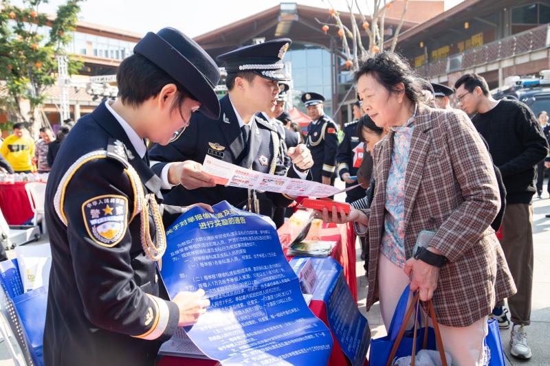 在為民服務(wù)區(qū),各警種代表帶著宣傳手冊和精美的紀念品,通過展板宣傳、案例宣講、毒品樣本展示、法律常識科普、現(xiàn)場答疑、現(xiàn)場寫春聯(lián)等方式與群眾面對面互動,深入推廣宣傳反邪防詐、識毒禁毒、交通安全、反恐防暴、食藥環(huán)保等安全防范知識和公安法律知識,拉近與群眾的距離,增強了宣傳活動的親和力和感染力。