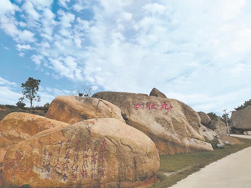 上形如蟒蛇探頭望天的巨石 (資料圖片) 東海壁壘 千年傳奇 從福清龍?zhí)镦?zhèn)東營村,驅(qū)車跨近10公里的海堤公路,便進(jìn)入東壁島。 向左,過了一座巍峨偉麗的石碑坊,便是海濱村。沿村道蜿蜒而上,駛到島嶼最高處,可見一座小小而充滿傳奇的花崗巖石山——九使山。山上怪石嶙峋,有三頭巨型大象并列的“三象巖”,有仰首望海的“巨龜石”,有貓鼠相對(duì)的“貓鼠巖”,有掛在林間的“仙桃?guī)r”,有仰天靜臥的“金翹椅”,有宛如玉如意的“如意石”……漫山的石頭,仿佛神靈隨意擺放著,帶給人絕處逢生的體驗(yàn)。 九使山上有座九使公廟,供著東壁島的傳奇神話人物——九使公,廟門一副對(duì)聯(lián),是東壁走出來的著名書畫家余險(xiǎn)峰撰寫的作品: 山不在高,同神仙晤對(duì),緣至深矣 海無須闊,共鷗鳥忘機(jī),樂何極哉 據(jù)海濱村黨支部書記、村委會(huì)主任余碧芳介紹,特別令人稱奇的是,九使山上有一個(gè)神秘的洞穴(通天洞),據(jù)說長(zhǎng)達(dá)十幾公里,通往龍?zhí)镦?zhèn)東營村和三山鎮(zhèn)嘉儒村。相傳,從前有個(gè)人被困洞中3年,出來后變得瘋瘋癲癲。當(dāng)?shù)啬懘蟮拇迕裨氲蕉蠢锾絺€(gè)究竟,可一到洞口,所有照明燈火就全部熄滅,傳得十分玄乎。村民認(rèn)為該洞是九使公(樵蟒成仙)的住所,為了尊重九使公,使之不受外界打擾,洞口就被村民給封死了。 九使山海拔雖然只有85.7米,但正應(yīng)了劉禹錫那句“山不在高,有仙則名”,這里的“大山九使”廟供奉的九使公,是島民的保護(hù)神,傳承著閩越先人蛇圖騰崇拜的信仰。“大山九使”廟始建于清道光戊子年(1828年),近年重修,小廟香客不絕、香火綿長(zhǎng)。廟宇邊上的“通天洞”遺跡尚存,如今僅留10余米由巨石縫隙組成的洞穴,供游人攀爬探險(xiǎn)。此處還聳立一肖形石“靈蛇銜珠”,似一巨蟒從通天洞探頭而出,鱗甲畢現(xiàn),惟妙惟肖。島上出海的村民常說,每當(dāng)大霧籠罩,漁船在大海上迷失航向,九使公便于山頂口吐明珠,如燈塔閃爍,指引漁船平安回港,跟媽祖娘娘一樣靈驗(yàn)。 九使山還是革命山。1934年秋,為躲避國民黨保安隊(duì)抓捕,中共閩中地下黨領(lǐng)導(dǎo)人黃孝敏、劉突軍和程序3人乘坐小船,趁著夜色到東壁島,在九使山的石洞中避難了7天時(shí)間。1941年抗戰(zhàn)期間面對(duì)來勢(shì)洶洶的日本鬼子,島民堅(jiān)壁清野,扶老攜幼,隱藏于九使山大大小小洞穴之中,如今山上還留存著當(dāng)年紅軍和村民躲避過的“紅軍洞”。 據(jù)史料記載,戚繼光在此平定倭寇時(shí),曾寫下一首七言絕句《望闕臺(tái)》:“十年驅(qū)馳海色寒,孤臣于此望宸鑾。繁霜盡是心頭血,灑向千峰秋葉丹。”戚繼光十年在外征戰(zhàn),功勛卓著,卻擔(dān)心奸臣在朝廷讒言惑君,“一片丹心比紅葉”的心事讓余險(xiǎn)峰感慨萬千,遂提筆揮毫“望闕”二字鐫刻于巨石之上,供后人瞻仰這位抗擊倭寇的民族英雄。 在余險(xiǎn)峰的帶動(dòng)下,越來越多像“望闕”這樣的書畫作品在山上“生成”。九使山頂?shù)木奘乡澘塘粟w樸初題寫的“觀海”二字,供游人打卡,旁邊還鐫刻了著名詩人、國學(xué)大師梁披云的一副五言行書楹聯(lián)“心融儒道釋,藝絕畫詩書”;九使宮外廊橋邊有一幅藍(lán)色的畫作《仙弈圖》令人嘖嘖稱奇;不遠(yuǎn)處的紅色石刻畫作《金猴獻(xiàn)桃》惟妙惟肖;另一幅分立在三塊巨石上的梅竹“雙清圖”相映成趣、清新脫俗……九使山興起的摩崖石刻群,將書畫題刻之美融入自然景觀,人文氣息與海島風(fēng)光交相輝映、相得益彰。 “籌建九使山登山道和摩崖石刻的近800萬元費(fèi)用,都是東壁島鄉(xiāng)賢互助會(huì)和眾多熱心村民自發(fā)捐款的,感謝他們?yōu)榧亦l(xiāng)發(fā)展所作的貢獻(xiàn)。”余險(xiǎn)峰表示。 登上九使山主峰,可以看到全島的風(fēng)貌,舉目四望,可看碧波萬頃,遠(yuǎn)山若隱若現(xiàn);靜心側(cè)耳,可聽海浪拍岸和鷗鳥鳴叫。夕陽斜照里,漫步沙灘,任由海風(fēng)輕拂臉龐,仿佛置身于夢(mèng)境之中。當(dāng)華燈初上,漁民歸來后,便有滿屋飄香的時(shí)鮮海味,游客可邊品海味邊酌小酒,看海浪伴舞,與海風(fēng)共飲,感覺十分愜意。 從九使山下來,沿環(huán)島路徐行,各種奇觀應(yīng)接不暇,有神奇的“不老泉”,人稱“死海”;有體現(xiàn)閩人遠(yuǎn)古蛇圖騰崇拜的“九使信仰”;有“神龍救人”美麗傳說的海上沙壩;有被喻為通往神仙國度的“海上河”……