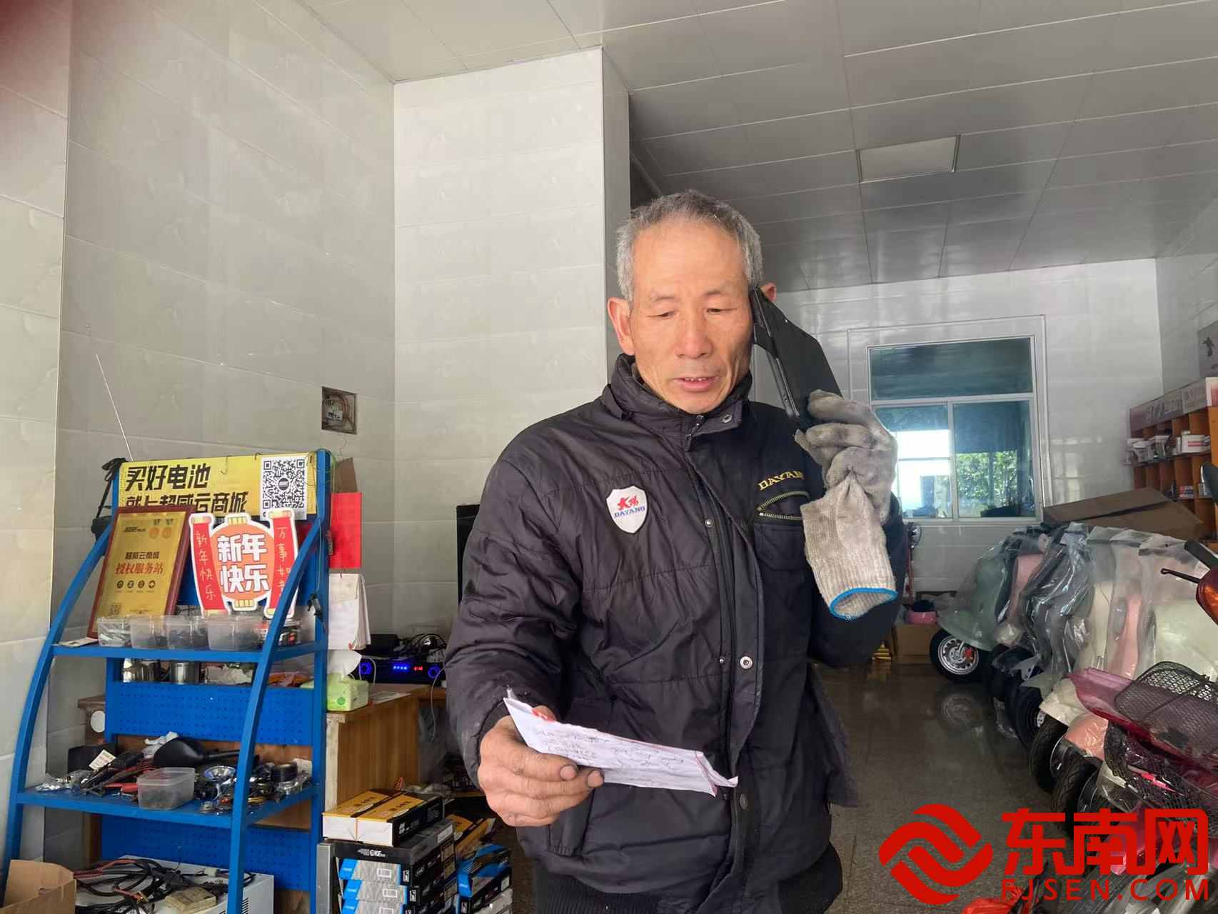 張榮生與供貨商溝通細節(東南網記者 黎臻懋 攝) “榮生啊,我這車充不了電了,你看看能不能修好?”一位村民推著電動車走了進來。 “行嘞,放這兒吧,我馬上就給你弄。”張榮生一邊回答,一邊熟練地拿起工具開始檢查車輛。 他的妻子丘五秀則在一旁幫忙遞工具、打掃衛生,或是做一些簡單的補換胎工作。兩人配合默契,效率極高。 走進修理鋪,記者看到,墻上掛滿了各種工具,地上散落著待修的車輛零件。張榮生熟練地拿起一個電動車輪胎,仔細檢查著磨損情況,然后迅速地從一堆輪胎中找出一個新的換上。他的動作干凈利落,每一個細節都透露出他對這份工作的熟練和專注。