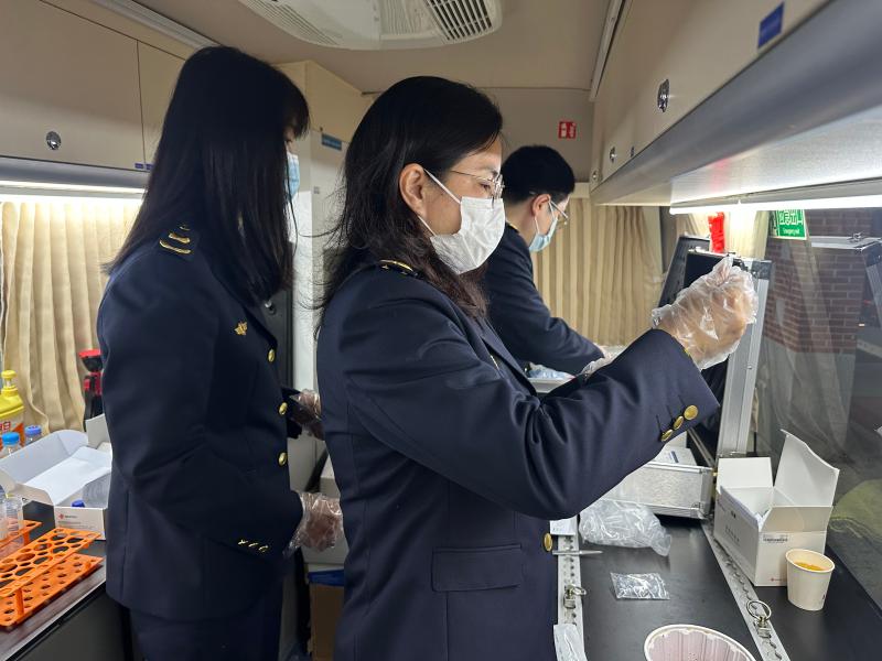 活動現(xiàn)場(東南網(wǎng)福清頻道 羅娜 吳娜婷 攝) 現(xiàn)場設(shè)置食品安全快檢專區(qū),配備專業(yè)檢測設(shè)備及技術(shù)人員,開展了“守安全、穩(wěn)信心、促消費”你送我檢惠民服務(wù)。市場監(jiān)管局工作人員為消費者演示“你點我檢”數(shù)字化平臺操作流程。市民通過掃碼即可對商超、農(nóng)貿(mào)市場等重點場所食品發(fā)起“點單式抽檢”,實現(xiàn)“即送即檢、即檢即知”。