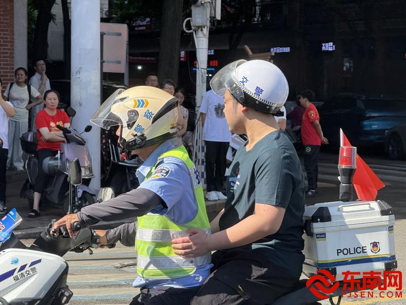 福清一中考點(diǎn)外,執(zhí)勤人員進(jìn)行高考保障工作。(東南網(wǎng)福清頻道 實(shí)習(xí)生 羅娜攝)
